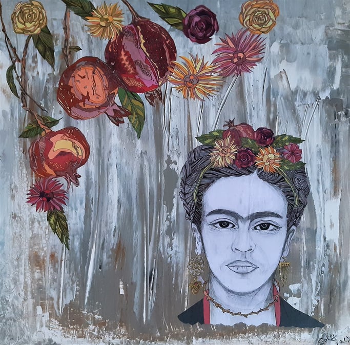Anwendung von Mixed Media, Akrylfarben, Collagen und Kombinationen mit