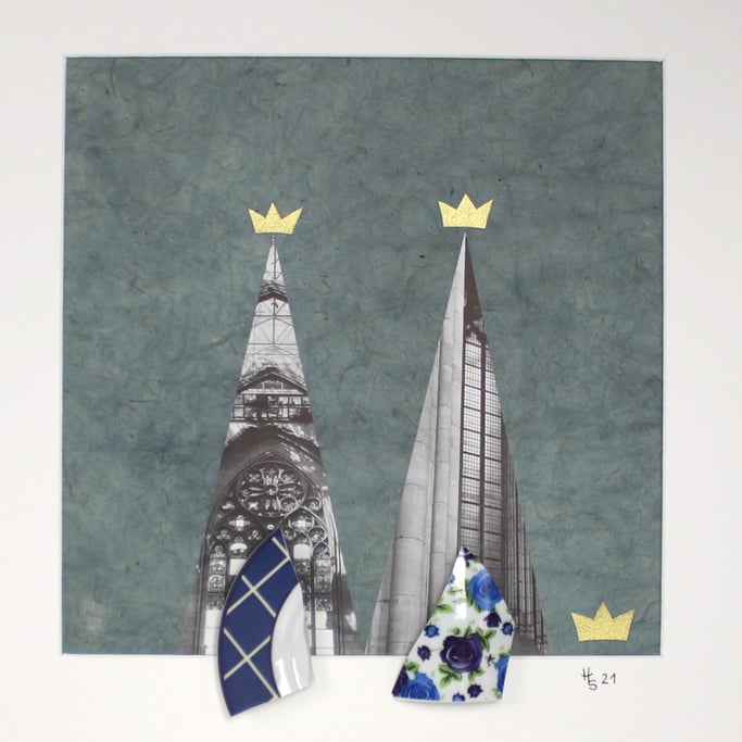 Seitdem kreiere ich kleine und größere Kunstwerke im Objektrahmen, wobei ich die Scherben mit Aquarellmalerei, Zeichnungen und teils verfremdeten abgestorbenen Gegenständen aus der Natur in eine Komposition bringe. Dabei ist mein größtes Anliegen, Menschen mit meiner Technik zu überraschen und ihnen beim Anblick der Bilder Freude zu bereiten. Mitunter wähle ich auch Themen, die eine gezielte Botschaft vermitteln.